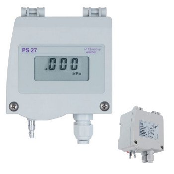 Przetworniki różnicy ciśnień z serii PS27 to nowy produkt w ofercie firmy Halstrup, przeznaczony do wykorzystania w pomiarach klimatyzacji/wentylacji np. do sprawdzania sprężu w kanałach lub poprawności pracy filtrów. Wykorzystuje najnowsze rozwiązania czujników różnicy ciśnień do zapewnienia wysokiej dokładności pomiarowej. Przetwornik PS27 wyposażono w piezorezystancyjny element pomiarowy. Przeznaczony jest do kontaktu z czystym powietrzem lub nieagresywnymi gazami. Opcjonalny wskaźnik cyfrowy LCD pozwala na odczyt wartości bezpośrednio w miejscu zainstalowania przetwornika. Przetwornik posiada wysoką odporność na przeciążenie - przy zakresach poniżej 10kPa wynosi 20x zakres, a przy najniższych 5x. Obudowa jest przystosowana do montażu naściennego albo szynowego. Oprócz różnicy ciśnień przetwornik PS27 może również mierzyć nadciśnienie i podciśnienie. Przetwornik umożliwia zerowanie za pomocą zewnętrznego sygnału. Posiada wbudowany adapter umożliwiający montaż na szynie DIN bez dodatkowych akcesoriów (np. w szafkach sterowniczych). Opcjonalnie przetwornik może być wyposażony w wyjście przekaźnikowe do sygnalizacji stanów alarmowych. Stopień ochrony: IP 65.